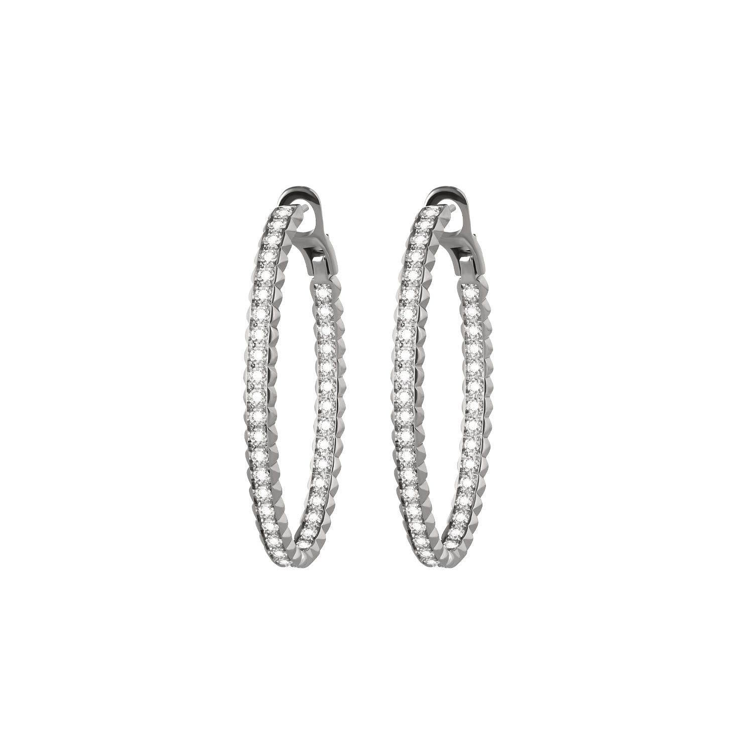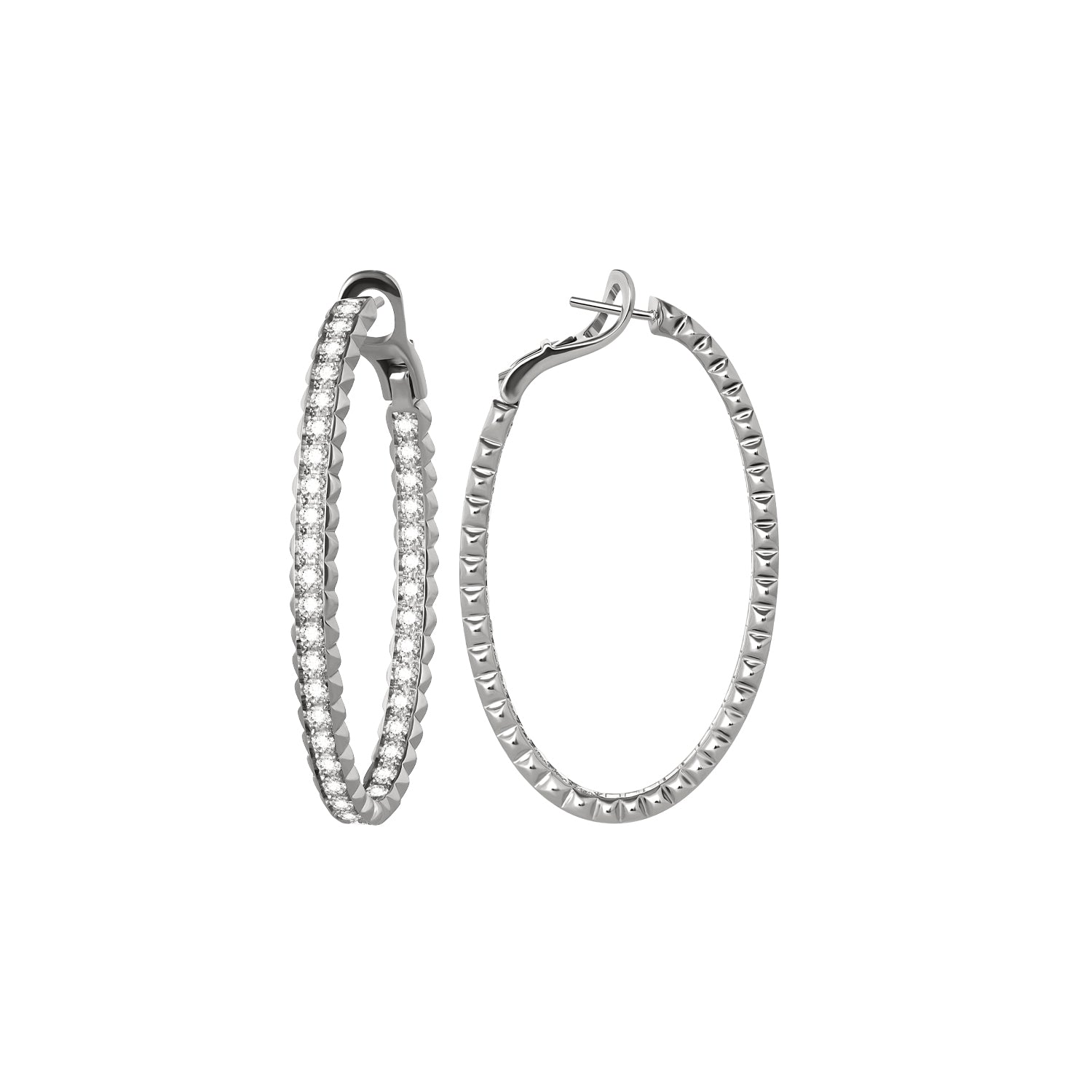 Indulge in opulence with our Large White Gold Pinecone Hoops With Diamonds. Meticulously crafted, they merge timeless refinement with daring charisma, echoing enduring allure. The intricate design, adorned with shimmering diamonds, captures attention, setting a new standard for adornments. Beyond aesthetics, these earrings symbolise profound connections, with their captivating design embodying the timeless allure of love. Embrace this exquisite embodiment of elegance and an eternal bond.